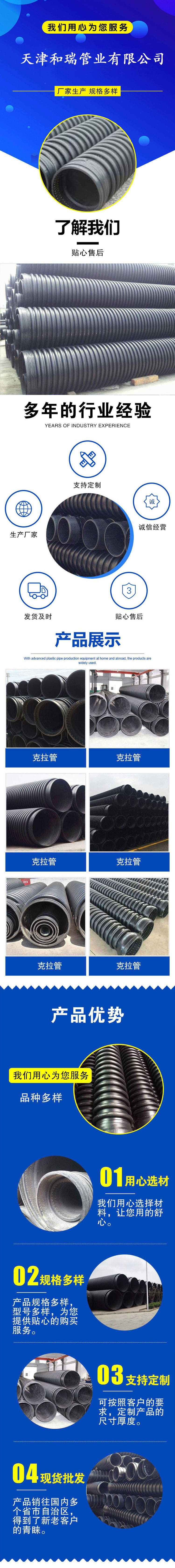 天津和瑞管业有限公司_HDPE双壁波纹管_PE给水管_克拉管_钢带增强管_钢丝网骨架管